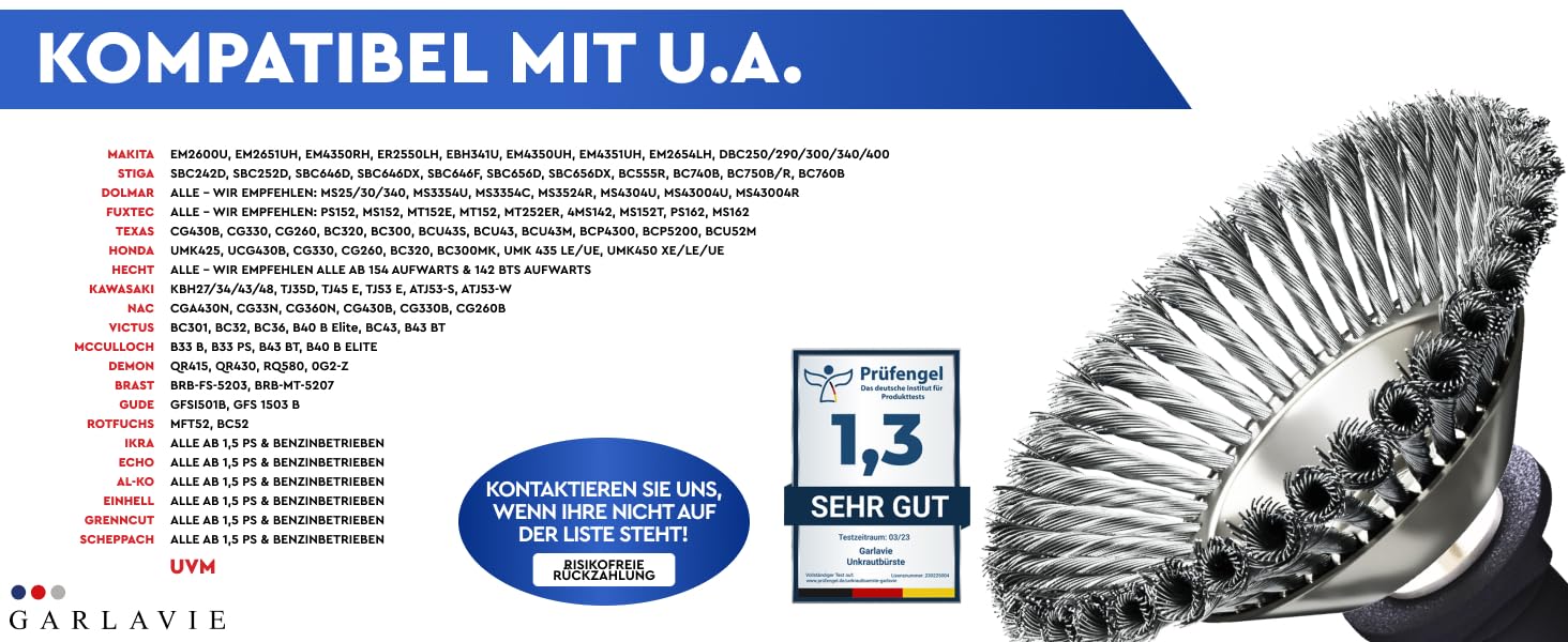 Schreiben Sie die erste Rezension für «2X Profi Unkrautbürste für Motorsense – Hochwertige Drahtbürste zur effektiven Moosentfernung im Garten»