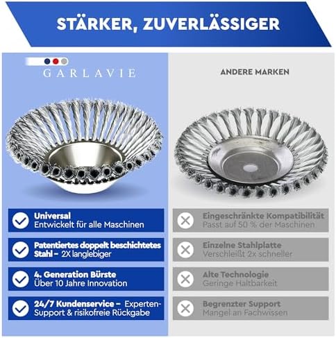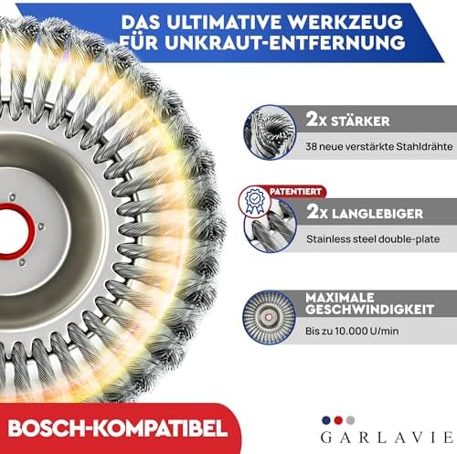2X Profi Unkrautbürste für Motorsense - Hochwertige Drahtbürste zur effektiven Moosentfernung im Garten2X Profi Unkrautbürste für Motorsense – Hochwertige Drahtbürste zur effektiven Moosentfernung im Garten