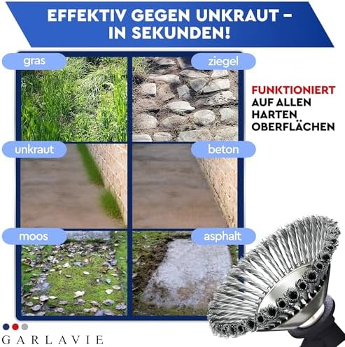 • Effiziente Unkrautbekämpfung: Hohe Drehzahl für schnelles und effektives Entfernen von Moos und Wildkraut.