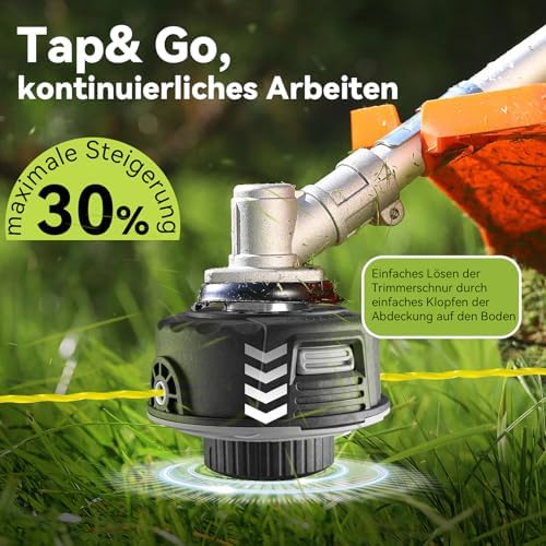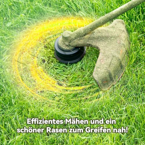 Der Rasentrimmer Kopf unterstützt Faden mit Durchmessern von 2 mm (0.080) bis 3 mm (0.105) und kann bis zu 19 Fuß (5,79 m) lange Fäden halten. Dies sorgt für Flexibilität bei verschiedenen Anwendungen und ermöglicht eine personale Anpassung an Ihre individuellen Bedürfnisse.