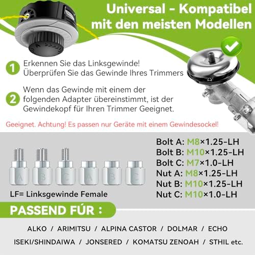 Jeder Kauf beinhaltet ein praktisches Adapter-Kit, das speziell für verschiedene Modelle konzipiert wurde. Die Schrauben und Muttern passen perfekt zu den gängigen Wellenmodellen Ihrer Trimmer. Überprüfen Sie vor dem Kauf die Anforderungen Ihres Geräts, um sicherzustellen, dass Sie die optimale Passform erhalten.