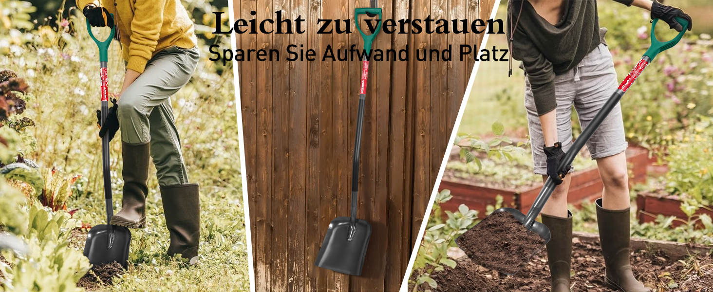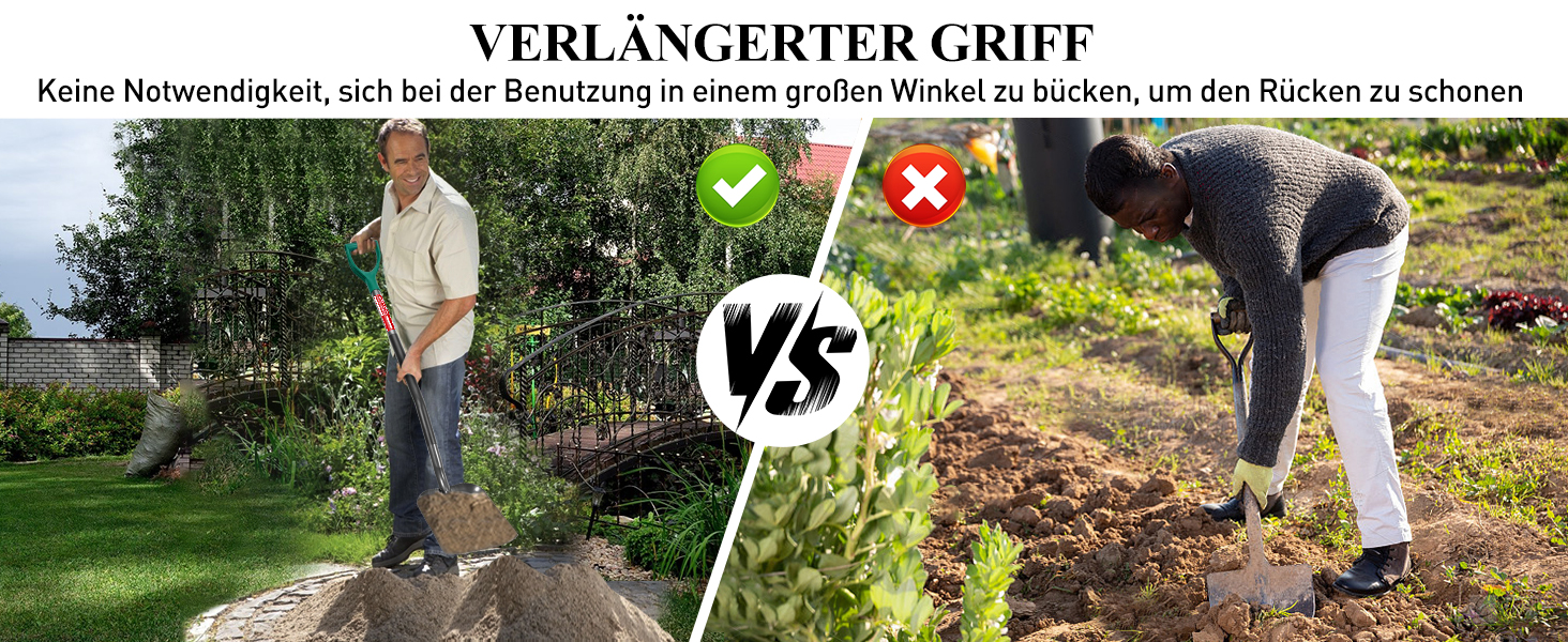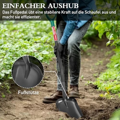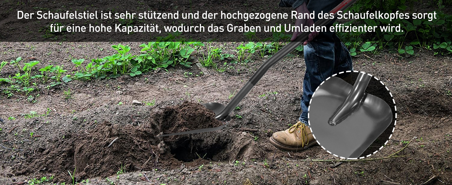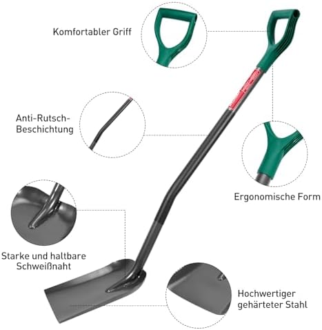Dank der sorgfältig geschärften Kante ist das Graben ein Kinderspiel. Sie sparen Zeit und Mühe, da die Schaufel mühelos durch den Boden gleitet. Dieser Komfort erhöht nicht nur Ihre Produktivität, sondern sorgt auch für ein angenehmes Nutzungserlebnis, egal ob Sie Blumen pflanzen oder Erdarbeiten durchführen.
