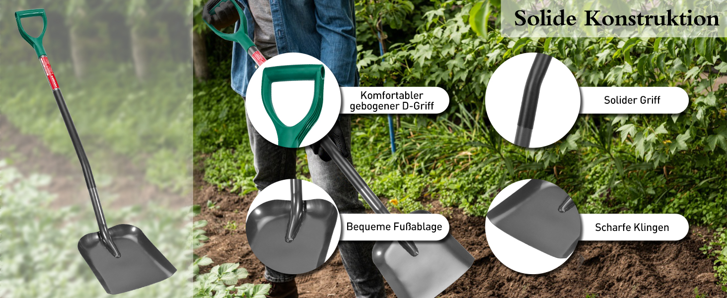 Ob in der Landwirtschaft, im Bauwesen, beim Pflanzen oder in der Viehzucht – diese Schaufel ist für eine Vielzahl von Aufgaben geeignet. Sie erfüllt alle Anforderungen, die Ihnen im Alltag begegnen könnten. Ihr breiter Anwendungsbereich macht sie zu einem unverzichtbaren Begleiter, der Ihnen bei unterschiedlichsten Projekten zur Seite steht.