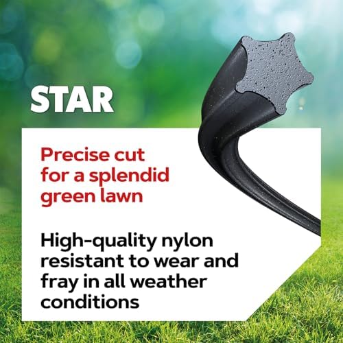 Die sternförmigen Mähfäden unseres Trimmerfadens verfügen über fünf scharfe Kanten, die für präzise Schnitte sorgen. Diese spezielle Form ermöglicht es, dichtes Gras mühelos zu durchdringen und reduziert den Luftwiderstand während des Trimmens. So können Sie selbst in schwierigem Gelände ein einwandfreies Schnittbild erzielen.