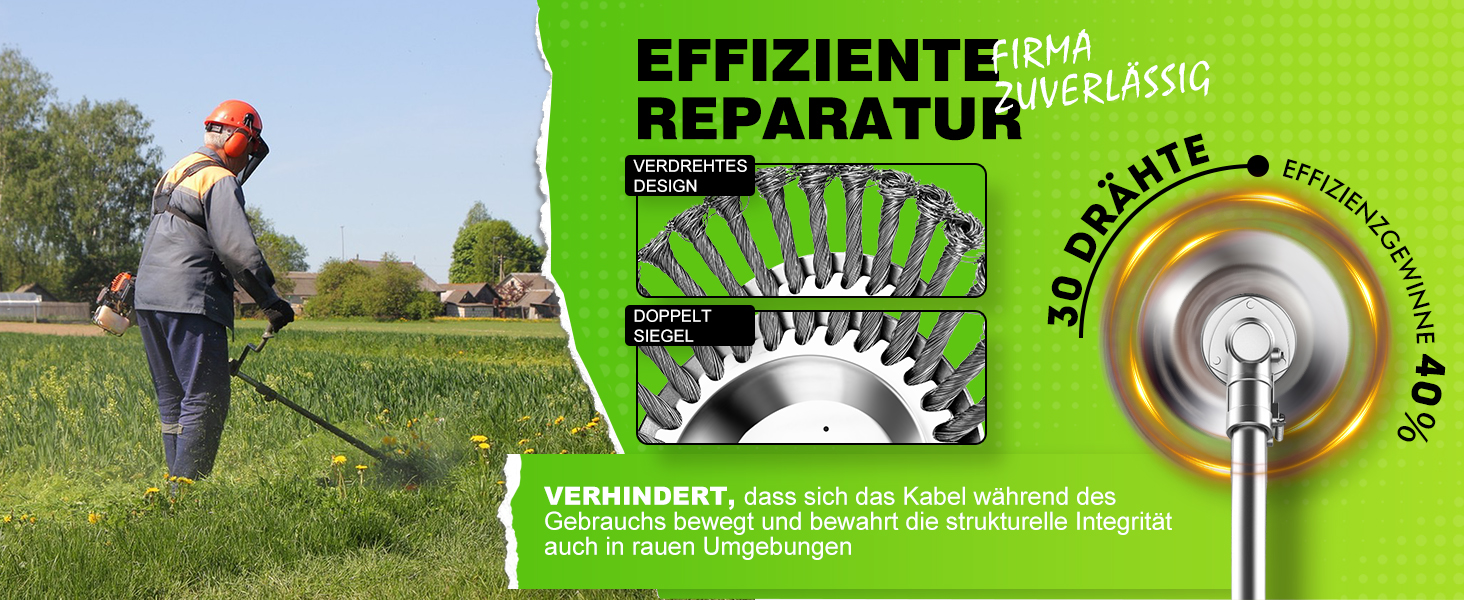 Unsere Unkraut Bürste besteht aus 30 hochwertigen, gedrehten Stahldrähten, die doppelt versiegelt sind. Diese spezielle Konstruktion sorgt dafür, dass sich der Draht während des Einsatzes nicht bewegt und die strukturelle Integrität auch in rauen Umgebungen gewahrt bleibt. Diese Langlebigkeit macht die Bürste besonders widerstandsfähig gegen Verformungen und Beschädigungen, was sie zu einem idealen Werkzeug für den Garten macht.
