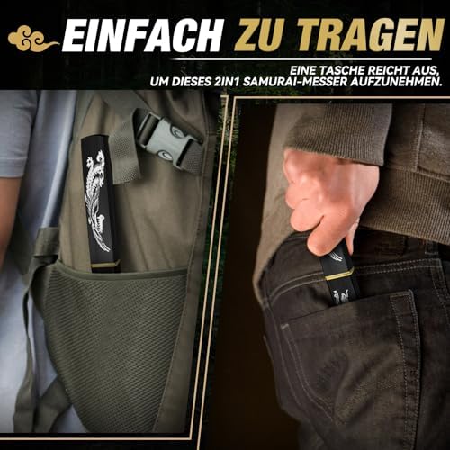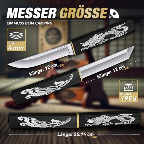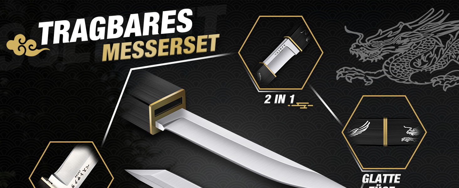 Inspiriert von traditioneller Handwerkskunst verbindet dieses Messer praktische Nützlichkeit mit einem eleganten Sammlerwert. Die ebenfalls eigens gestaltete Geschenkebox, die mit einem lebensechten Drachenmotiv verziert ist, ergänzt die beeindruckenden Doppel-Messer auf wirkungsvolle Weise! Ob für deinen Vater, Ehemann oder gute Freunde – dieses Survival-Messer ist eine außergewöhnliche und durchdachte Geschenkidee!