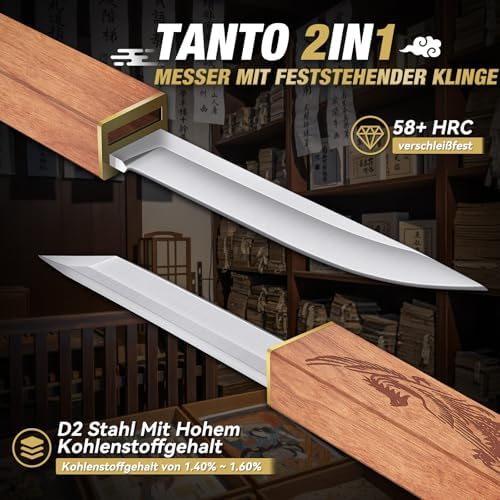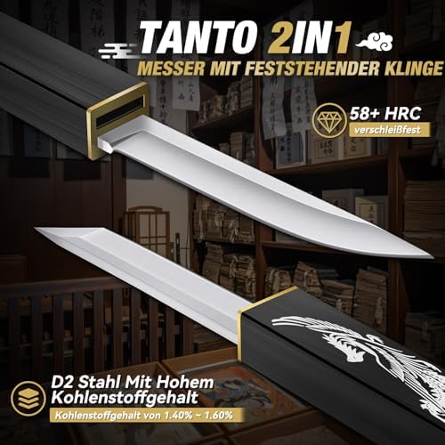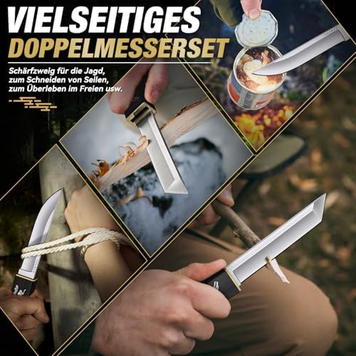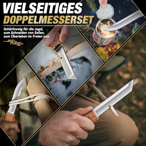 Die Kombination aus Tanto-Messer und Jagdmesser verleiht diesem Überlebensmesser eine außergewöhnliche Vielseitigkeit. Die robuste Tanto-Klinge ist ideal für präzise Arbeiten und kräftiges Durchdringen, während die Jagdmesser-Klinge sich perfekt zur Handhabung von Beute und zum Schneiden von Seilen eignet. Dieses Survival-Messer erfüllt die unterschiedlichsten Anforderungen von Freizeitaktivitäten wie Camping, Bushcraft und Jagd.